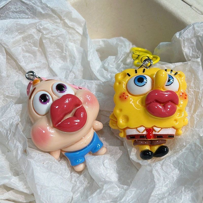 Cartoon Goofy Red-Lips SpongeBob Keychain